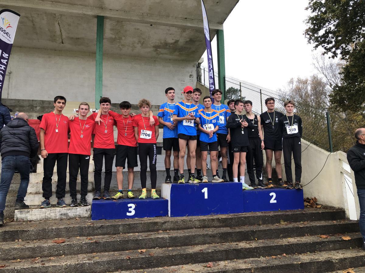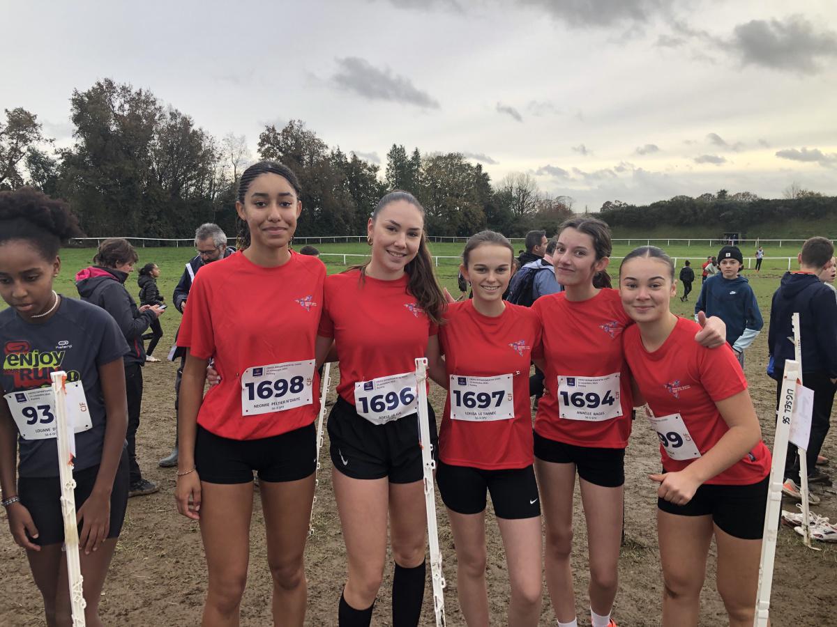 Un parcours difficile et très « gras » attendait nos athlètes et ils n’ont pas été déçus ! De belles performances pour nos élèves avec une belle troisième place par équipe des cadets et juniors garçons composée de Elouann, Émilien, Alex, Louis et Sacha. La deuxième équipe garçons composée de Titouan, Augustin, Alexis, Armel et Théo fini 10ème. Ces deux équipes se qualifient pour le Régional. Ewan, quant à lui, termine à la 137ème place mais malheureusement trop loin pour se qualifier à l’étape suivante.