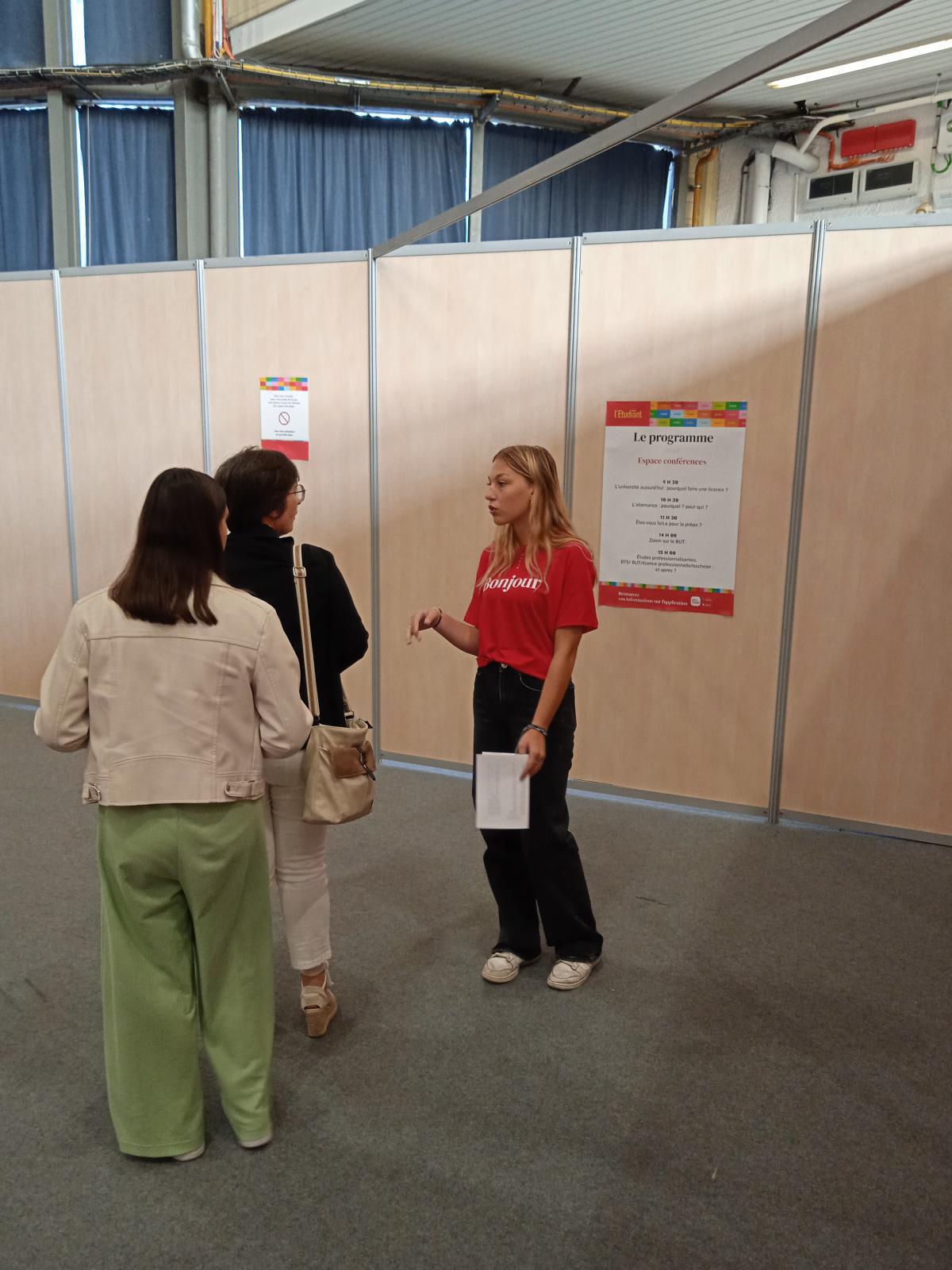 Ce samedi 7 octobre, 11 élèves de la filière Métiers de l'Accueil ont pu mettre en pratique leurs compétences sur le salon de l'Etudiant au parc des expositions Chorus à Vannes. Accueil des exposants, des visiteurs, commissariat général, espace VIP, annonces micro, espace conférences...les missions étaient variées et enrichissantes.