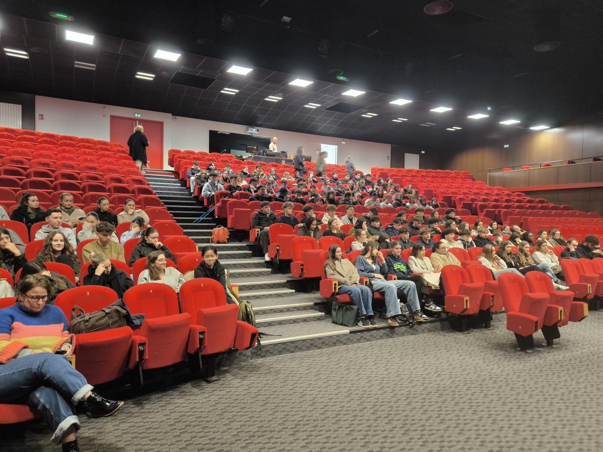 Ce vendredi 16 janvier, les étudiants en première année de BTS se sont retrouvés à l'amphithéâtre Michel Le Corno pour une conférence animée par M. Jean-François Perzo et Mme Carine Leclerc, animatrice en pastorale, qui leur ont présenté, à travers le parcours professionnel de M. Perzo, l'importance de l'éthique en entreprise.