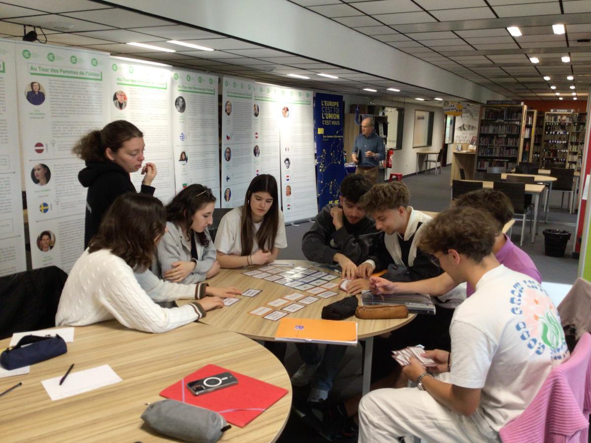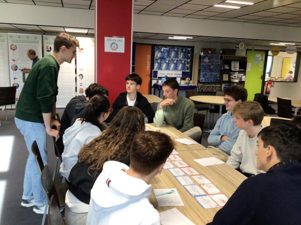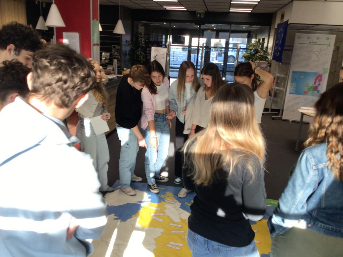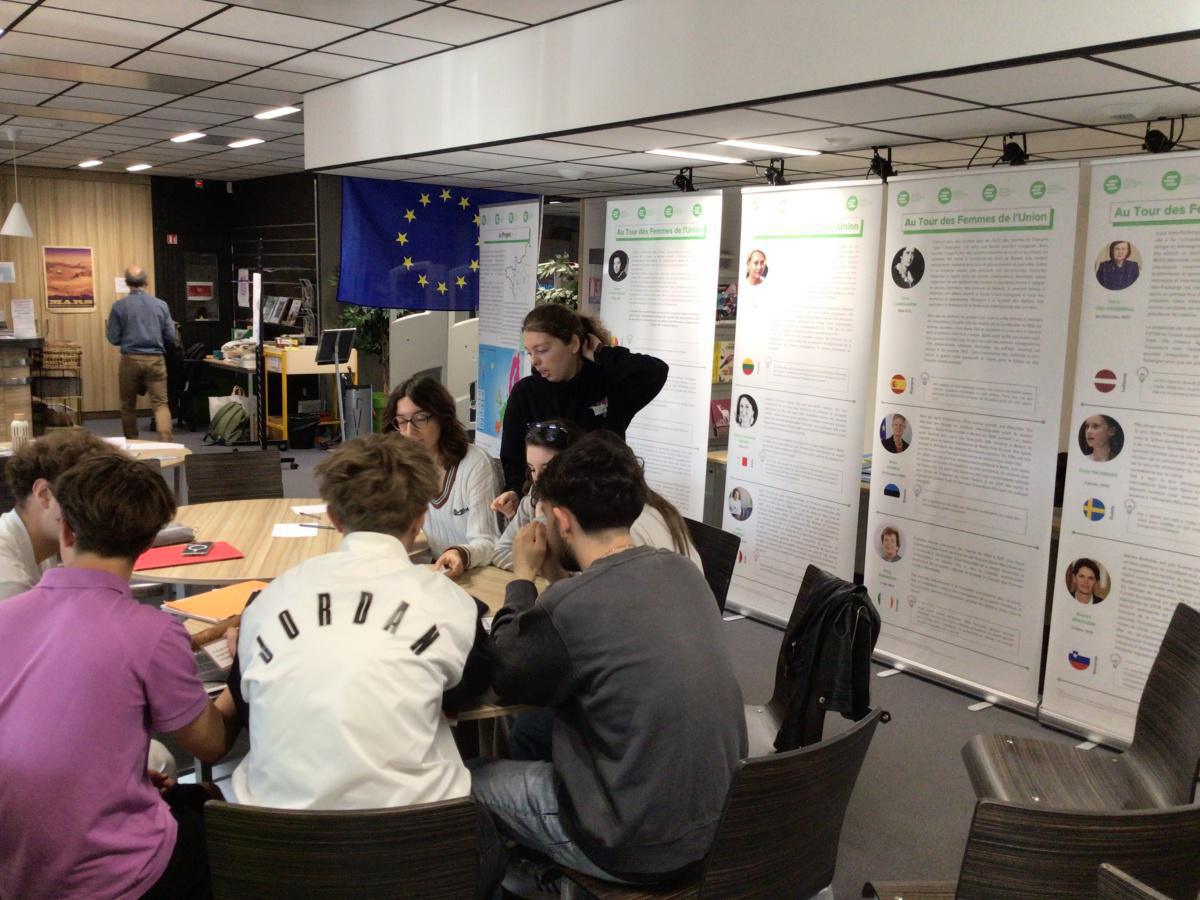 A l'initiative des professeurs documentalistes et de leurs professeurs Mme Le Borgne et Mr Le Corno, les élèves de T15, TSTMG1 et TSTMG2 ont participé aux ateliers autour de l'Europe proposés par l'association des jeunes européens. Ainsi Vianney Vermeil ancien élève du lycée ( étudiant et président des jeunes européens de Rennes) a passé la journée au CDI pour échanger avec les lycéens et animer des ateliers concernant l'Union européenne , moment très intéressant et enrichissant pour nos lycéens à l'approche des élections Européennes.