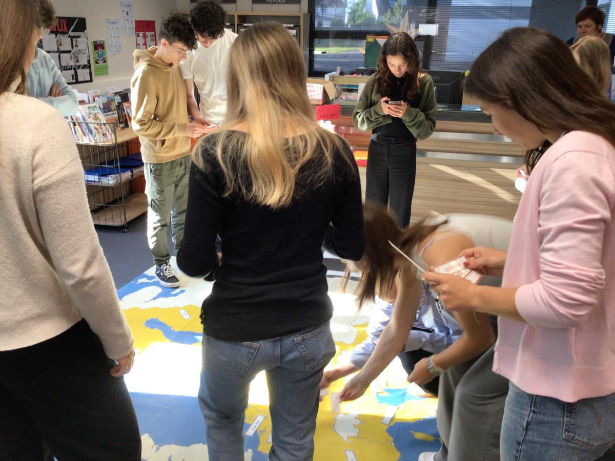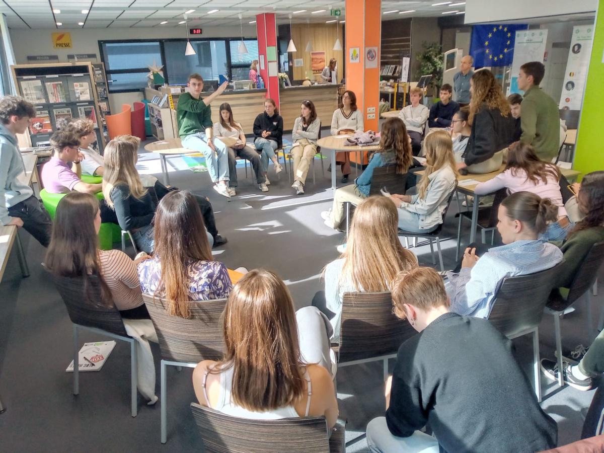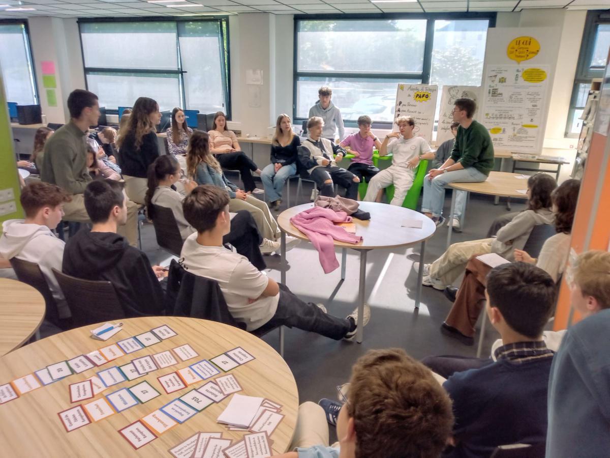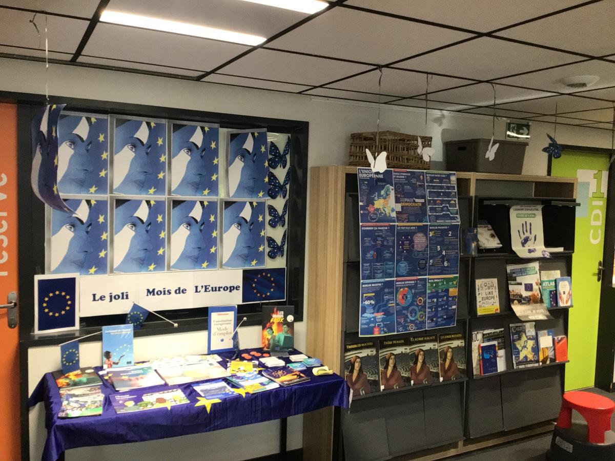 A l'initiative des professeurs documentalistes et de leurs professeurs Mme Le Borgne et Mr Le Corno, les élèves de T15, TSTMG1 et TSTMG2 ont participé aux ateliers autour de l'Europe proposés par l'association des jeunes européens. Ainsi Vianney Vermeil ancien élève du lycée ( étudiant et président des jeunes européens de Rennes) a passé la journée au CDI pour échanger avec les lycéens et animer des ateliers concernant l'Union européenne , moment très intéressant et enrichissant pour nos lycéens à l'approche des élections Européennes.