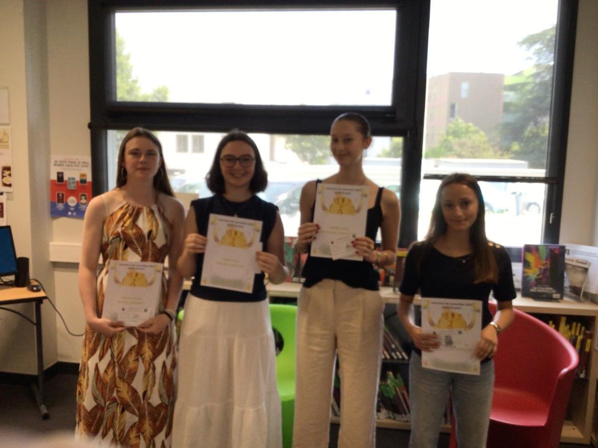 1er prix : Emma Saffre P06 2ème prix: Elisa Wasier P06 3ème prix : Romane Le Barbier P04 prix seconde: Mathilde Arthaud S06