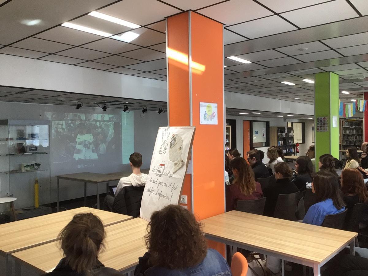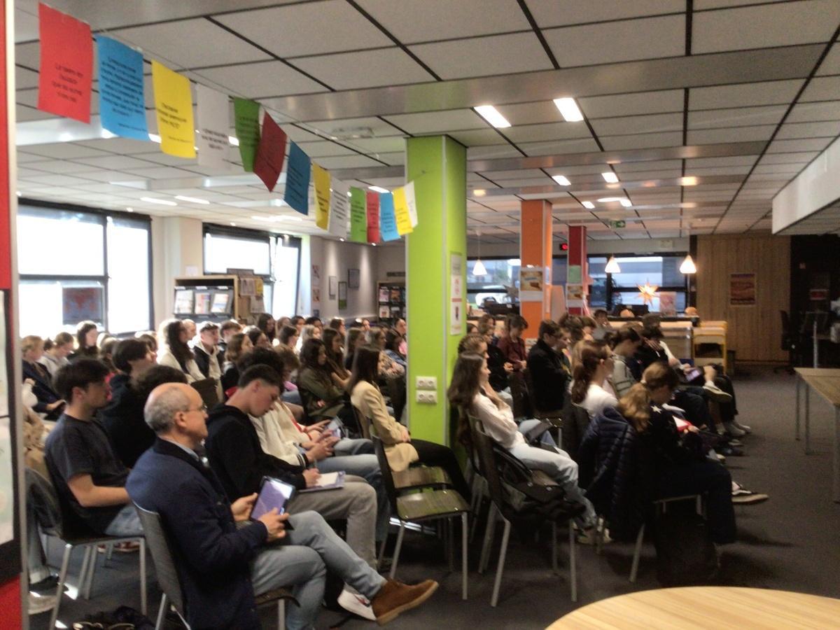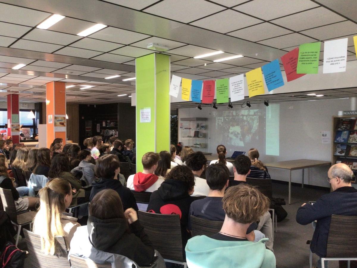Dans le cadre de la semaine de la presse sur le thème "Où est l'info», le CDI a organisé une séance le 1 er avril à 10 heures pour assister à la conférence de rédaction du journal Médiapart. Les élèves de première 02, les élèves BTS SAM1 et les élèves de l’atelier presse ont ainsi percé les mystères d’une salle de rédaction de presse et observé les débats et échanges dans l’équipe de journalistes autour de l’actualité. Une autre façon d’aborder l’éducation aux médias et à l’information. Initiative qui sera certainement reconduite.
