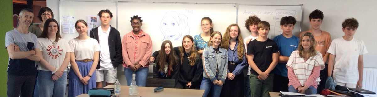 En prambule de la soirée d'ouverture du festival Mosaïc, seize élèves de la seconde à la terminale ont participé, mardi 30 mai sur le temps du midi, au CDI de Saint-Paul, à la rencontre avec l’auteur et dessinateur de bandes dessinées rennais, Lomig. Un échange apprécié par les jeunes autour, notamment, de l'une de ses créations. Avec bienveillance et le plaisir de voir chacun exprimer ses capacités, selon ses possibilités.