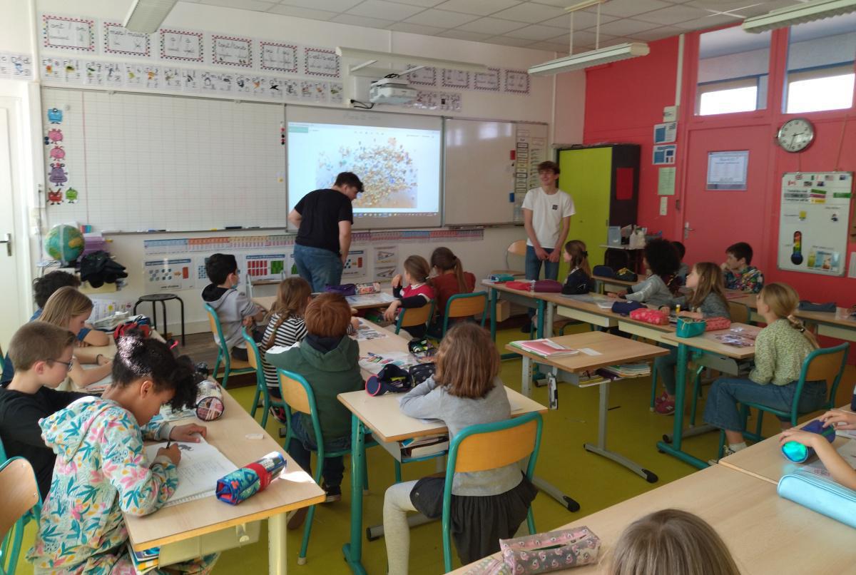 Huit élèves en classe de seconde professionnelle 1 sont intervenus, ce mardi 22 mars, dans une classe de CE1 de l'école privée Bienheureux Pierre-René Rogue, à Vannes.