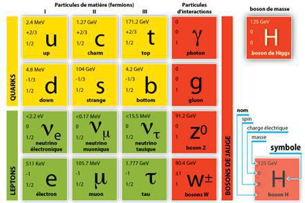 Photo : Tableau des particules élémentaires (source : Babelio).