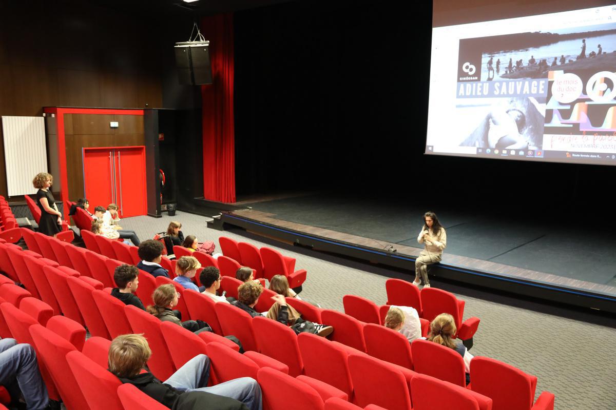 Jeudi 23 novembre 2023 Dans le cadre du Festival du Mois du Doc, Swana, Baptiste, Salomé et Pablo, élèves en Première, spécialité Cinéma-audiovisuel, ont présenté, à l’amphithéâtre du campus, le film documentaire « Adieu sauvage » sorti en 2023.