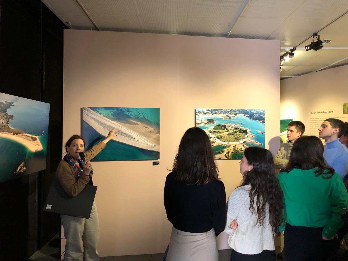 Dans le cadre du programme d'histoire-géographie, la classe de terminale 14 s'est rendue, mardi 9 mai, sur le port de Vannes, au Kiosque, pour découvrir l'exposition photos Estran, imaginée par Erwan Le Cornec. Géographe de formation, le photographe était lui-même présent pour présenter ses réalisations et répondre aux questions de nos jeunes, accompagnés par leur professeur. Retour en images.