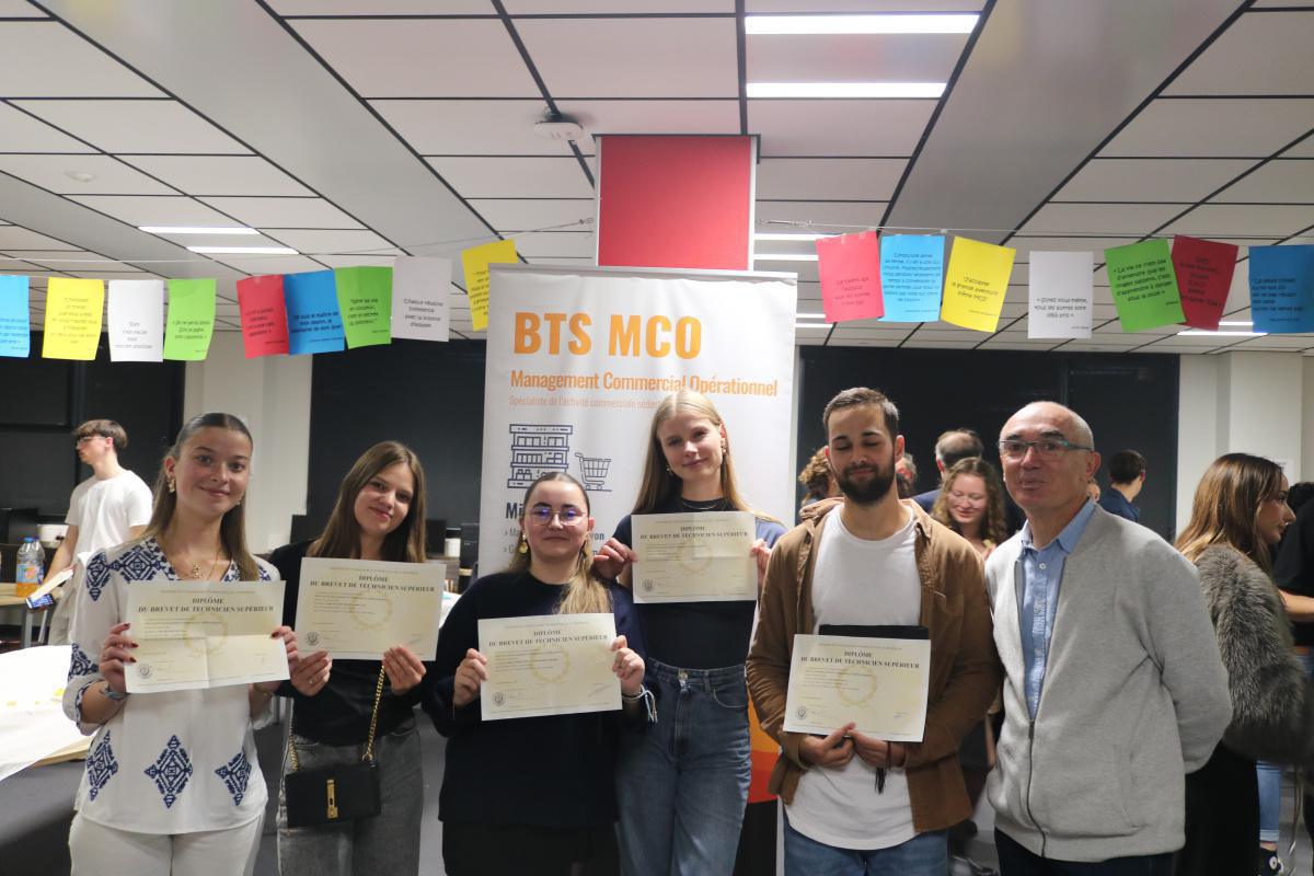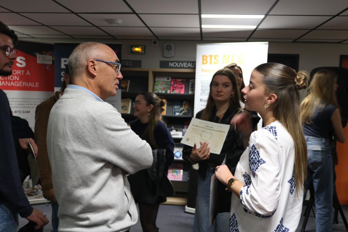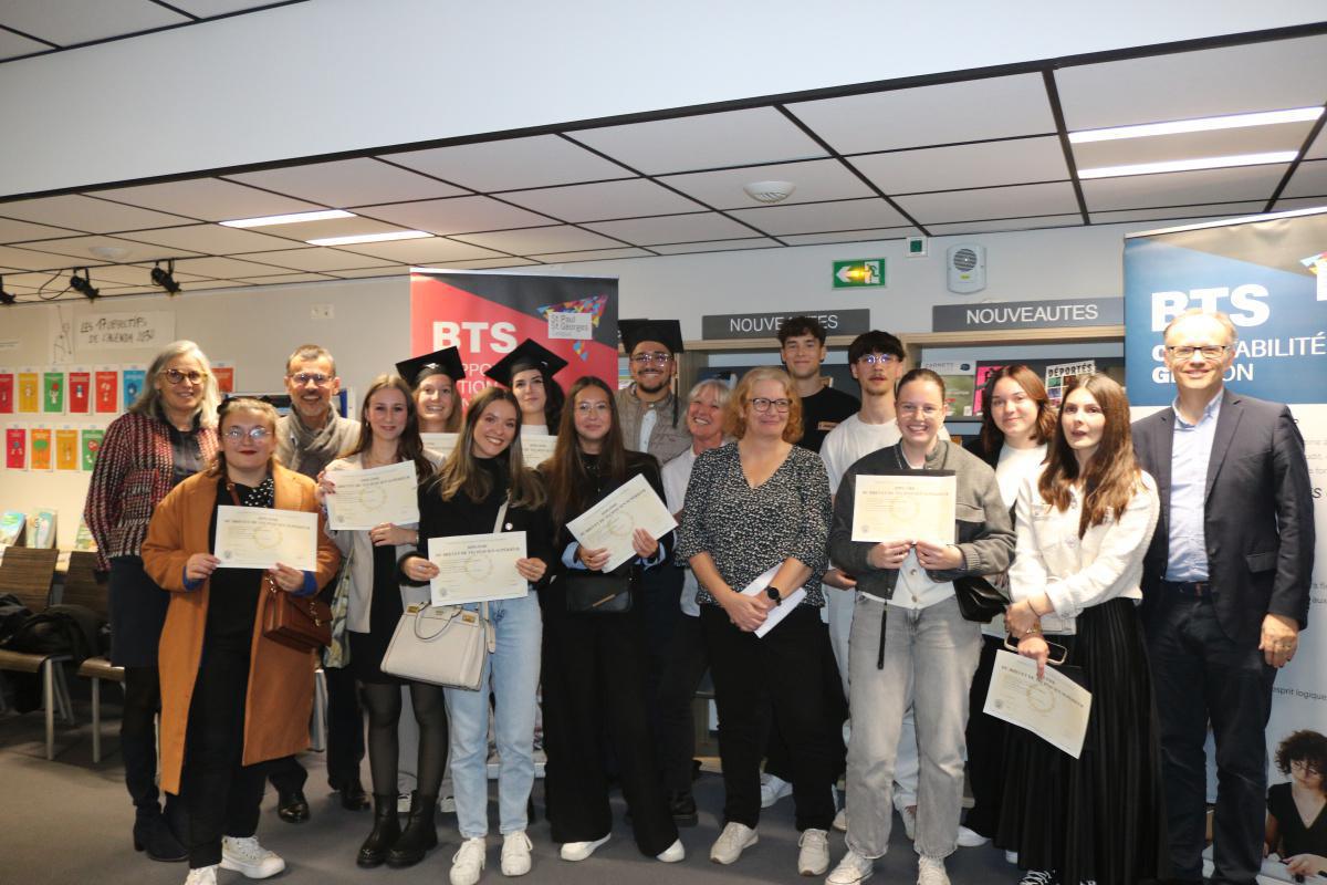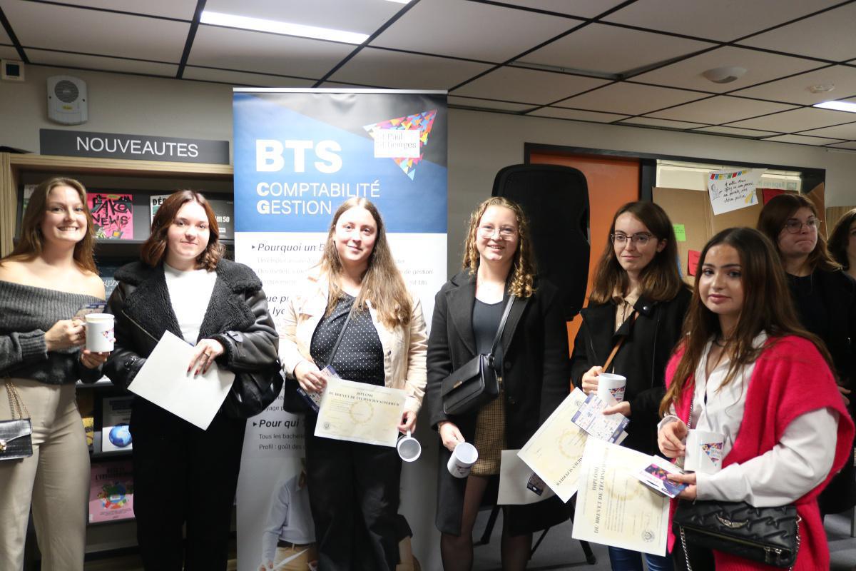 Les majors des quatre BTS ont été récompensés par Mme Bregou (directrice adjointe en charge du Pôle Supérieur) et par Mme Lefeuvre (responsable adjointe en charge de l'international) ainsi que la major de la certification TOEIC (avec un score de 975 sur 990!).