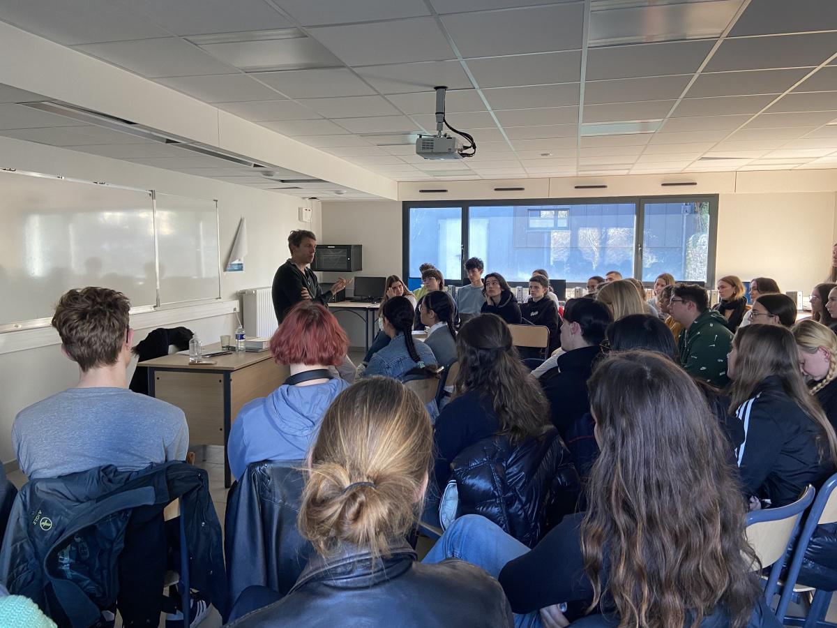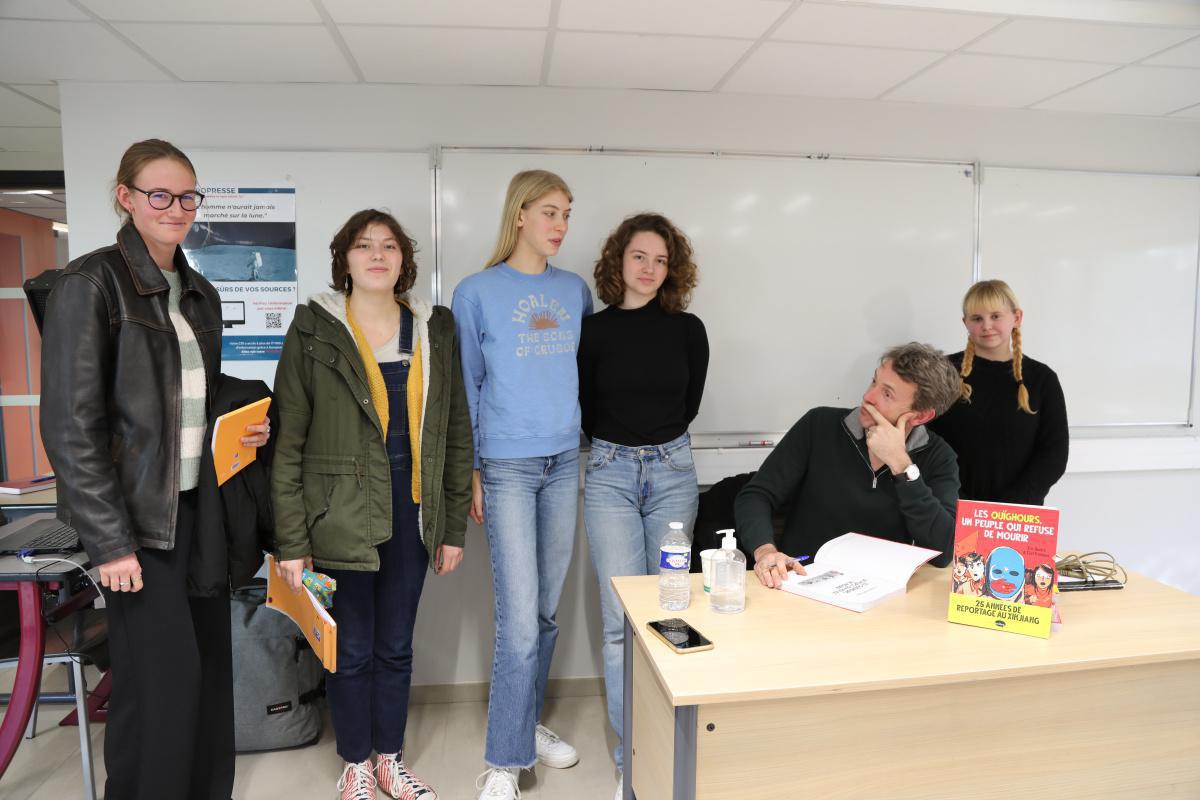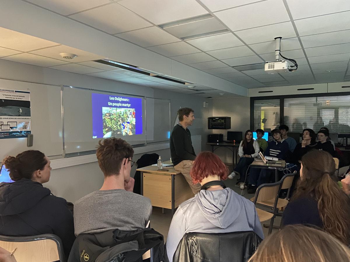 C'est dans ce cadre qu'ils ont rencontré le journaliste Éric Darbré, qui leur a présenté le roman graphique dont il est le scénariste : « Les Ouighours un peuple qui refuse de mourir » Il enquête depuis plus de 25 ans sur ce peuple turcophone vivant dans le Xinjiang en chine et qui est victime d’un génocide. Pour le journaliste la BD est un support d'information accessible pour tous. Les lycéens ont posé leurs questions autour de la problématique des Ouighours puis ont abordé avec Éric Darbré le métier de journaliste aujourd'hui. L’échange constructif a permis aux jeunes de s’interroger sur la manière de s’informer et l'importance de vérifier ses sources.
