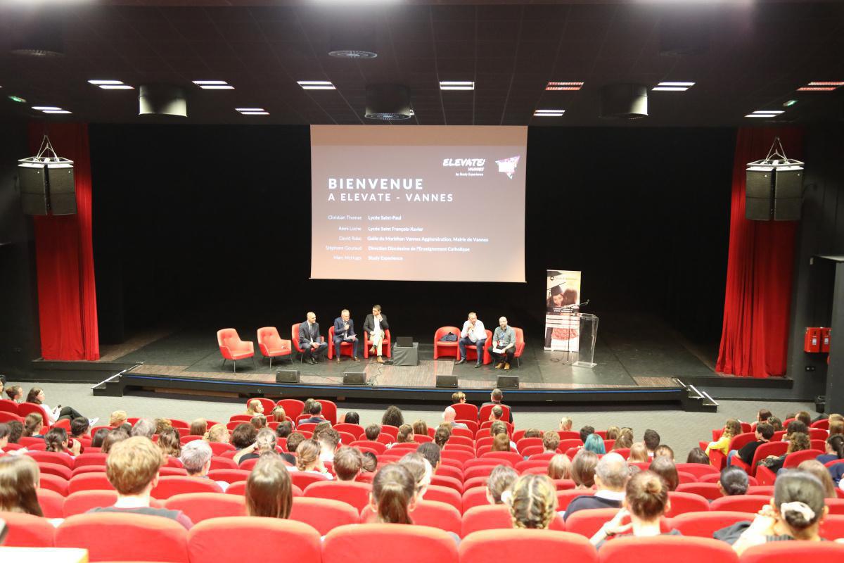 Au programme; Mot d'accueil [avec l'intervention de M. Thomas, Directeur du Campus, M.Loche, Directeur du Lycée Saint-François, M. Robo, Maire de Vannes et M. Gouraud directeur de la DDEC 56], présentation générale sur les études à l'étranger, témoignages d'entreprises, présentation des parcours internationaux (IB, Dual Diploma..) et panel de discussions avec les universités.