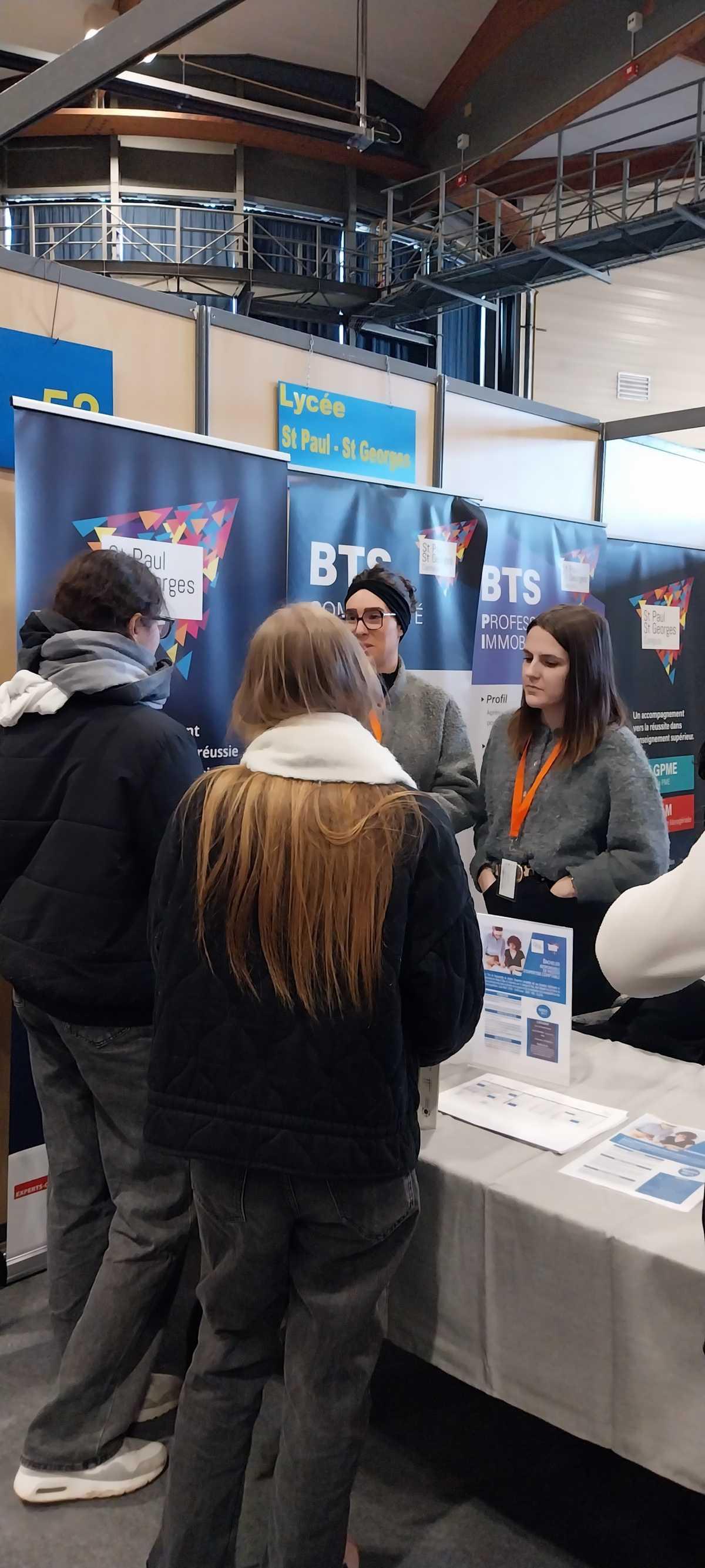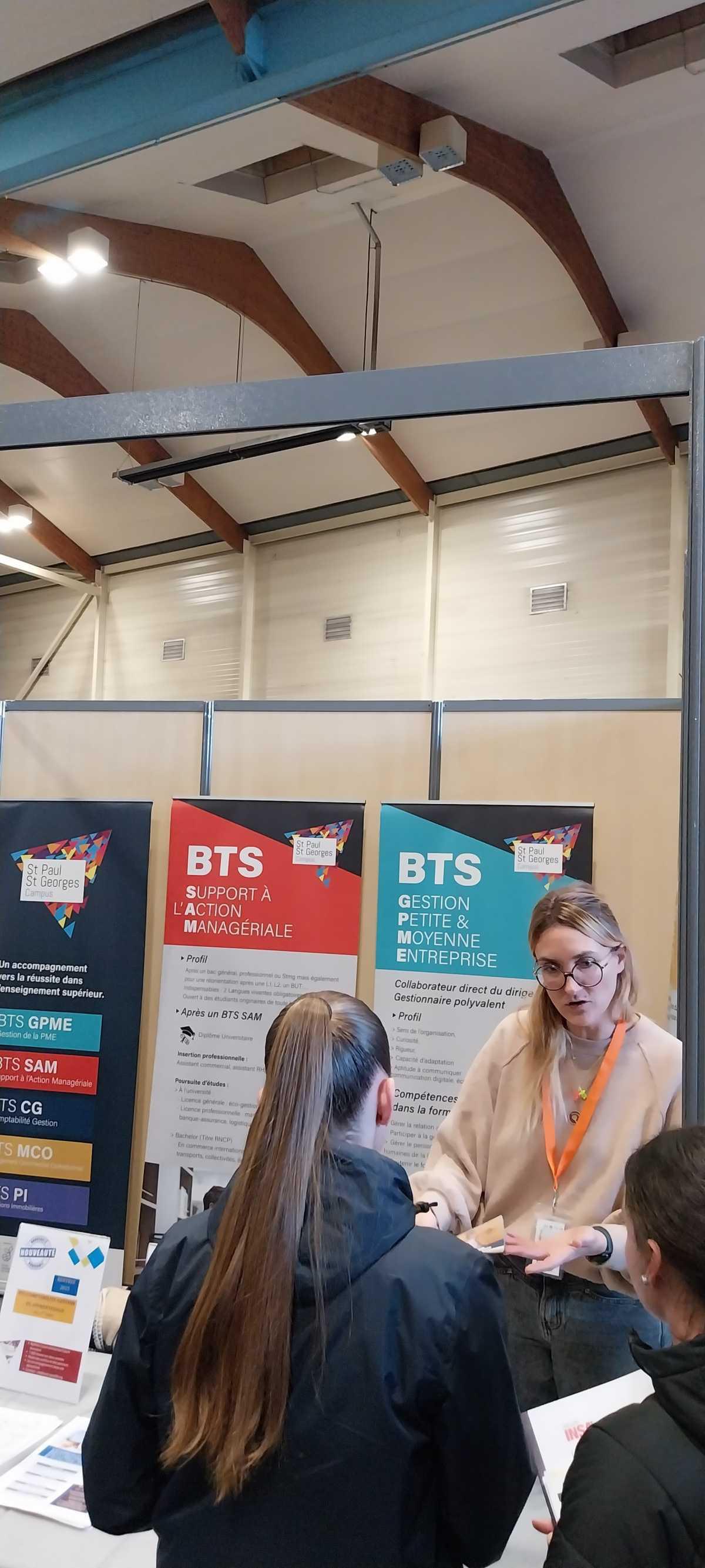 Durant ces deux journées, étudiants de chaque section de BTS, enseignants et membres de la direction se sont relayés sur le stand du Campus Saint Paul - Saint Georges pour éclairer lycéens et parents sur les possibilités post-bac offertes par ce dernier et leur proposer de venir découvrir nos locaux lors de la Porte Ouverte du Campus le samedi 1er février 2025 de 9h à 16h.