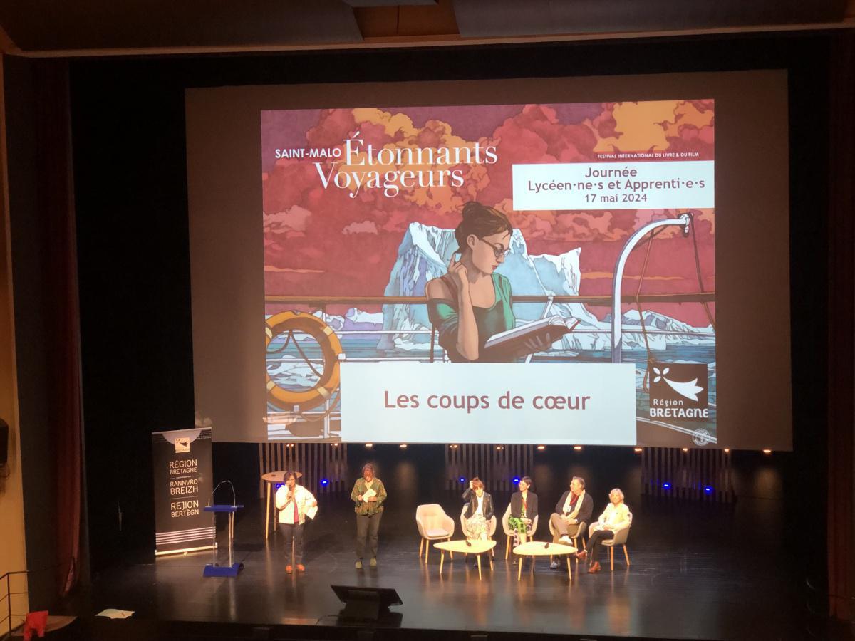 La classe de Seconde 12 a participé au Festival "Étonnants voyageurs" de St Malo. Tout au long de l’année ils ont travaillé avec leur professeur de français Karine Malagre et les professeurs documentalistes sur le recueil de poèmes : Mes forêts d’Hélène Dorion . Ils ont pu échanger avec l’auteur, rencontrer la poétesse scénariste Québécoise Joséphine Bacon et parcourir le salon du livre dont le thème cette année était le "Québec" . Journée très riche pour nos lycéens.