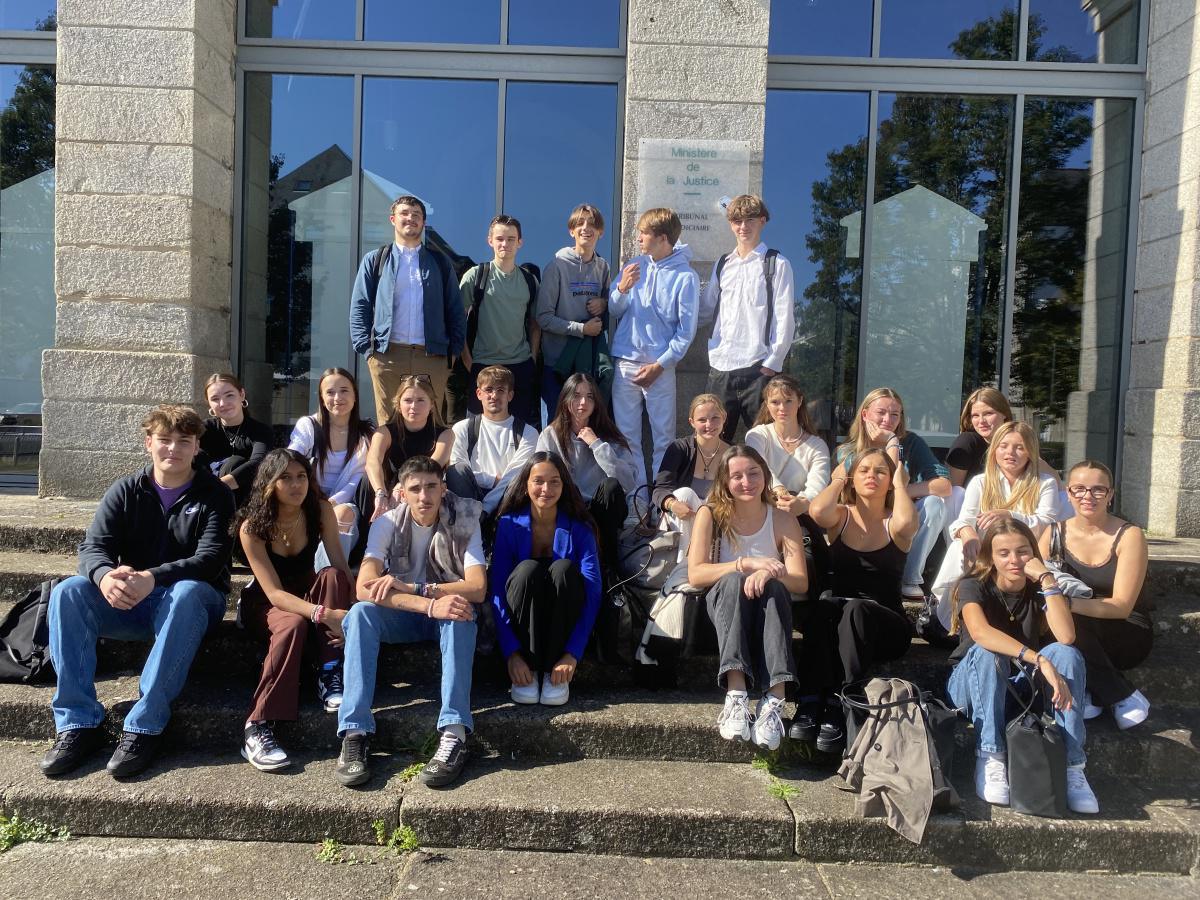Les PSTMG 2 et 3 et leurs professeurs : Nicolas Casson, Catherine Lambert et Alice Landowski ont eu la chance d'assister à une audience correctionnelle au Tribunal de Vannes les 25 et 28 septembre dernier. Les TSTMG1 ont également eu l'occasion d'y aller ce lundi 9 octobre.