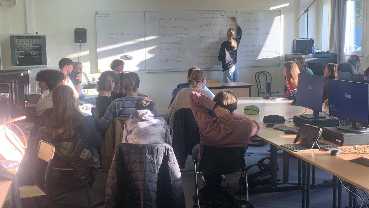 L’équipe du festival rennais COURT-MÉTRANGE, notre partenaire privilégié, a accueilli les 38 élèves au Cinéma Pathé de l’Esplanade Charles De Gaulle, pour une séance « COURT-CIRCUIT » de court-métrages fantastiques et insolites adaptée à leur niveau scolaire. Chacun.e élaborera une critique du film qu’il a retenu dans le cadre du concours CRITIQUE SUR COURT. Les prix des meilleures critiques seront décernés début 2025. Un premier rendez-vous avec Arthur Mercier, universitaire et script-doctor les suivant sur toute la période d’écriture, leur a permis de poser les bases d’une première structure articulée autour de 6 épisodes de la série bouclée d’une saison. Arthur interviendra sur 3 créneaux de cours jusqu’en novembre. Il travaille en collaboration avec David, de la structure ARTEFAKT, qui opère le lien avec le dispositif du CNC « ÉCRIS TA SÉRIE ».