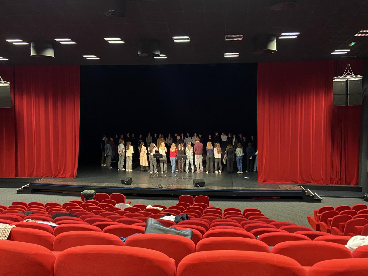 Ce travail d’exploration ludique et poétique a donné lieu le jeudi 08 février 2024 après-midi à une performance scénique jouée à l’amphithéâtre Michel Le Corno devant cent-cinquante élèves de première venus écouter leurs pairs.