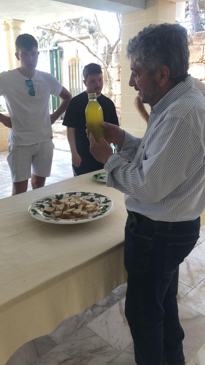 Aujourd’hui, mercredi 4 mai, rendez-vous était donné à 10 h direction Wardija pour visiter une fabrique d’huile d’olive typique du pays. Les élèves ont découvert différentes espèces d’arbres, en particulier l’olivier typique de Malte qui donne des olives blanches et sa saveur à l’huile d’olive maltaise. Nous avons terminé la visite par une dégustation d’huile – excellente ! – et de Ftira, un met maltais à base de pain, d’huile d’olive, de sauce tomate, d’anchois (ou thon) ainsi que du fromage de brebis maltais et différentes herbes.