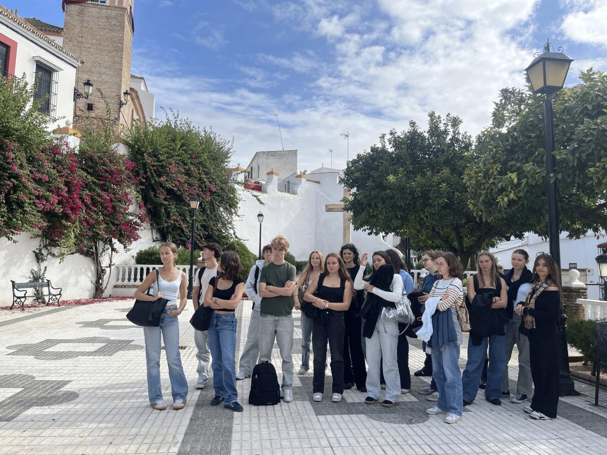 Semaine andalouse très enrichissante avec au programme : immersion linguistique, culturelle et gastronomique quotidienne au sein même des familles (week-end et repas) , découverte du rythme scolaire et des activités de l’IES Blas Infante , utilisation des transports publics et exploration de Séville à pied ( visite guidée de la ville ancienne, Los Reales Alcázares , La Plaza De España, le village de Carmona ) ou en bateau écologique sur le río Guadalquivir. Et pour terminer, une leçon de flamenco réveillant les danseurs et danseuses en herbe au son du cajón et de la guitare.